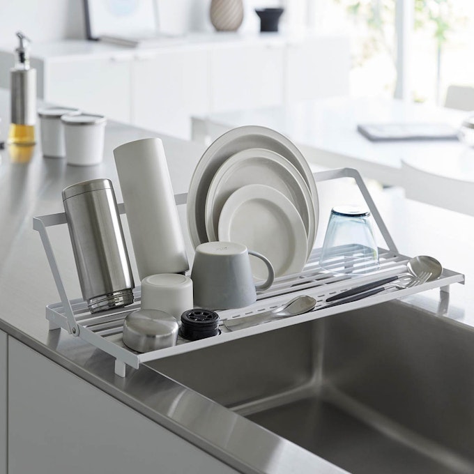 シンク上スリム水切りラック タワー シリコーントレー付き