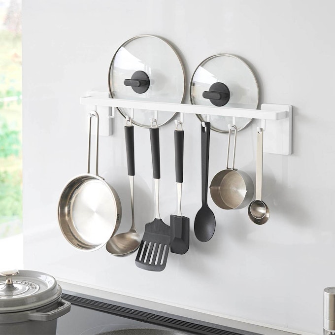 フィルムフック鍋蓋も収納できるキッチンツールバーフック付き タワー W55