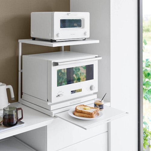 スライドテーブル付きキッチン家電下ラック タワー 2段