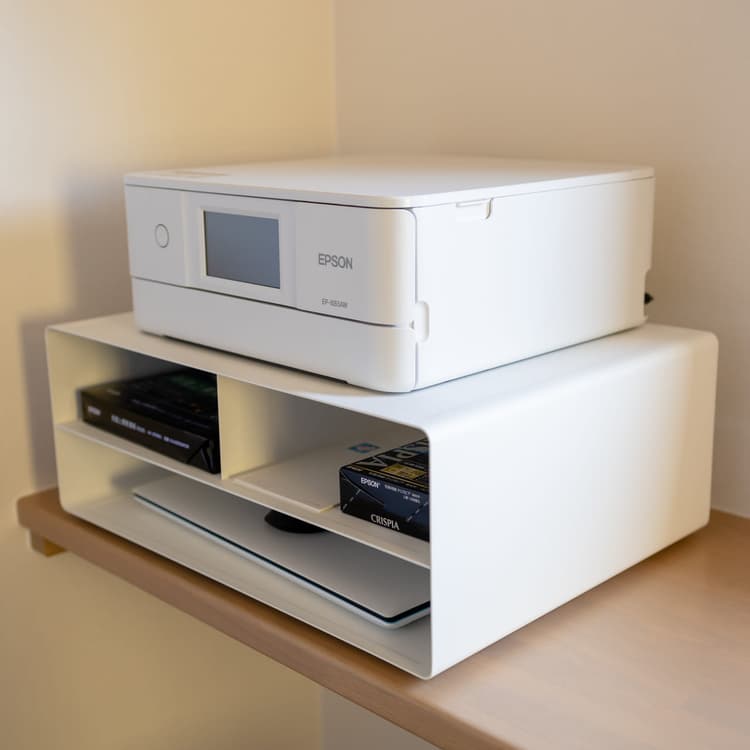 A4プリンターがすっきり収まる便利なプリンターラックA3の印刷用紙、ノートパソコンなどを一緒にスッキリと収納できますデスク下などではキャスターを付ければ必要な時だけ出して使えて便利ですキャビネット上などで使用する場合はキャスター無しで置いて使用できます購入はこちらからRakutenAmazon
