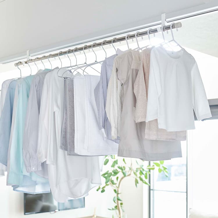 足りない物干しスペースの確保に便利。室内物干しポールホルダー2個組お手持ちの突っ張り棒やポールを掛ければ室内干しや収納用のハンガーバーになりますお部屋や浴室前の鴨居、窓枠の幅に合わせて簡単に取り付けられますランドリールームに付ければ、洗う→干すがその場で完結上部に差し込むピン(針)と下部の調整ネジで固定し落下を防ぎます購入はこちらからRakutenAmazon