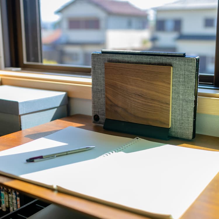 差し込むだけでスリムに収納。ノートパソコンスタンドパソコンやタブレットを上から差し込むだけの簡単収納立てて収納できるのでテーブルを広く使えます底面には設置面を傷つけないシリコーンマット付き天然木がアクセントのお部屋に馴染むお洒落なデザイン購入はこちらからRakutenAmazon