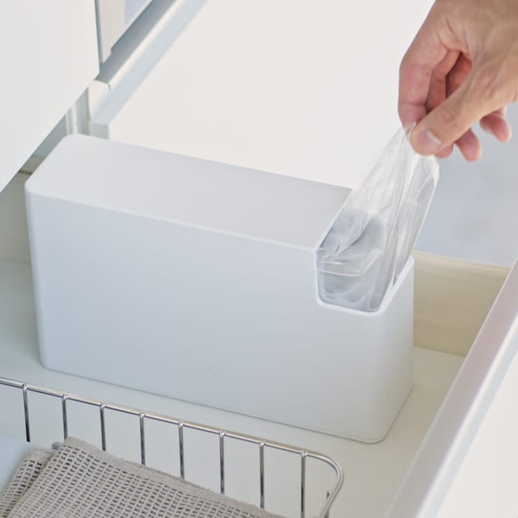 キッチン・バス・リビングを快適に|Yamazaki全ての商品キッチンシンク下収納スリムプラスチックバッグケース タワーtowerスリムプラスチックバッグケース タワー品番:3976/3977WHBKホワイトブラックRakutenAmazon置き場所に困る食パン1斤袋や調理用ポリ袋を取り出しやすくスリムに収納袋を入れ替えて使いやすく、すっきりと収納できるケースです。2通りの袋の入れ方ができるので、食パン1斤袋とポリ袋のどちらも収納することができます。引き出しの高さに合わせて縦置きでも使用できます。おむつ用の袋の収納にも便利。取り出し口が角にあるので、引き出しを全部開けなくても袋をサッと取り出せます。RakutenAmazon食パン1斤袋や調理用ポリ袋を取り出しやすくすっきり収納できるケース取り出し口が角にあるので引き出しを全部開けなくても袋をサッと取り出せます引き出しの高さに合わせて縦置きでも使用できます2通りの入れ方ができるので、食パン1斤袋とポリ袋のどちらも収納可能おむつ用の袋の収納にも便利ですMovie購入はこちらからRakutenAmazonColumn袋は取り出しやすく収納 | 山崎実業コラムFollow UsXFacebookInstagramLINEPinterestTikTokYouTubeシンク下収納の商品一覧へキッチン・バス・リビングを快適に|Yamazaki全ての商品キッチンシンク下収納スリムプラスチックバッグケース タワーFollow UsXFacebookInstagramLINEPinterestTikTokYouTube