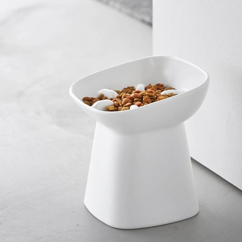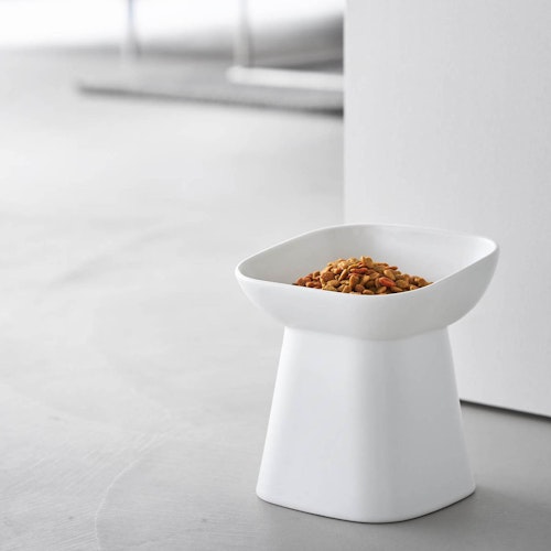 食べやすい高さ陶器ペットフードボウル ヌークス 斜め H17